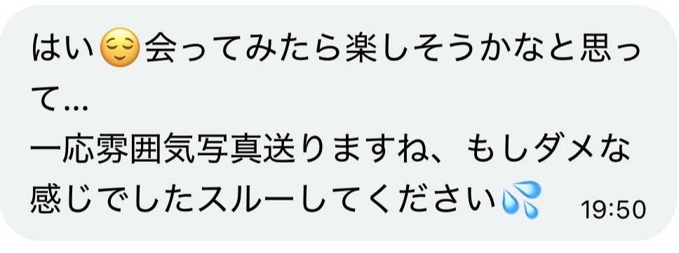 このフェーズはすごい楽ですよ。なんたって、女性の方から誘ってくるので、こちらはそれに応じてタイミングを見計らって「会おう」と誘うだけです。