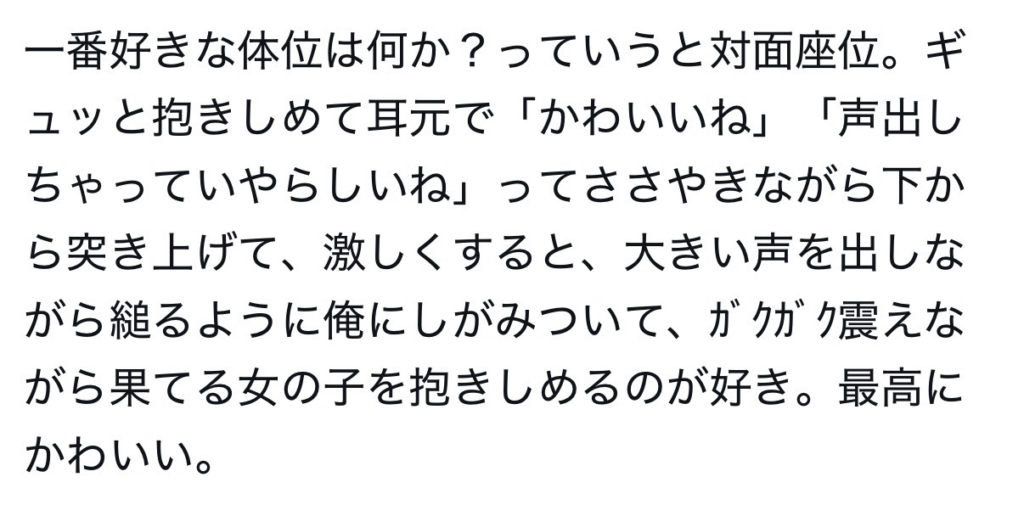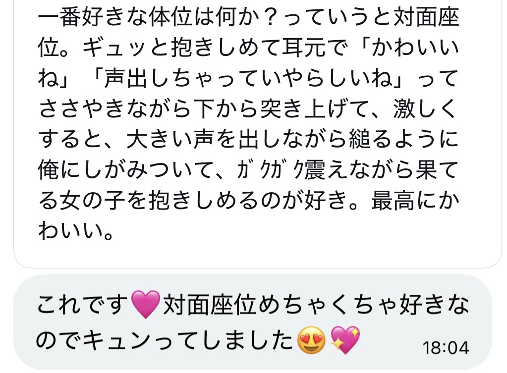 これも私が実際に対面座位が好きで、どういうところが好きか、本音で書いたからこその女性の反応です。